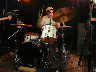 Connecticut favorites The Guru played next, minus their lead guitarist, Kyle McEvoy (who was reportedly home with a 105* fever). Shirtless, long-haired, donning a sailor’s cap and early 90’s-style spectacles, and constantly cupping his nonexistent breast, drummer and vocalist Eddie Golden III jokingly referred to the band as “The Fluru”. (The Guru’s other guitarist, Dan George, was also reportedly ill.) Dan Barry, of the New Haven Advocate, recently compared The Guru to Modest Mouse (among other bands), and ain’t that the truth: Golden sounds just like Isaac Brock. His zany on-stage antics were warmly received by the audience, and it’s obvious why locals can’t get enough of these guys.